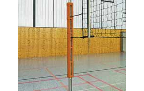 Защитой для волейбольных стоек называют специализированные защитные маты, которые изготавливаются из спортивной ткани. Такие маты оборачиваются и закрепляются вокруг волейбольных стоек. Протекторы нужны для защиты спортсменов от получения травм в самые активные моменты игры. Обычно такая защита изготавливается из тентовой ткани, в которую помещается мягкий наполнитель. Прикрепляются протекторы к стойке при помощи ремней или липучек.