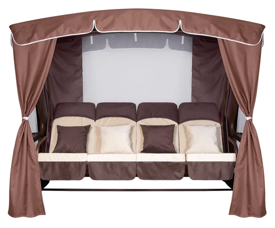 Данный матрас подойдёт для садовых качелей, такой матрас состоит из отдельных четырёх подушек-сидений, на каждое сидение надевают подголовник. Кроме того, в комплекте находятся четыре квадратные подушки, имеющие размеры 40 на 40 см. Длина сидения составляет 200 см, глубина 60 см, размер спинки составляет 200 см, а высота 70 см. Изготовлен данный матрас уличной ткани, в качестве наполнителя используется холлофайбер, толщина изделия составляет 10 см.
